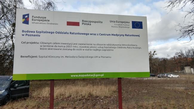 Najczęściej przy inwestycjach budowlanych/infrastrukturalnych – duża tablica widoczna z dystansu.